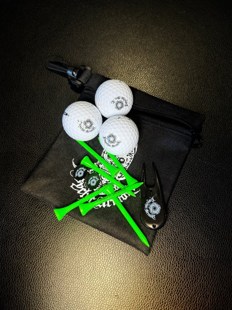 zip up tournament kit with clip to attach to your golf bag.